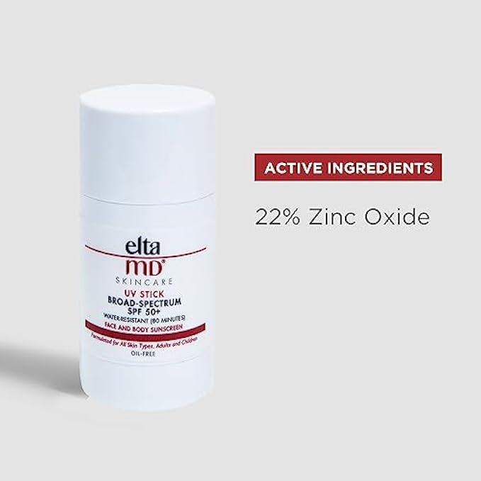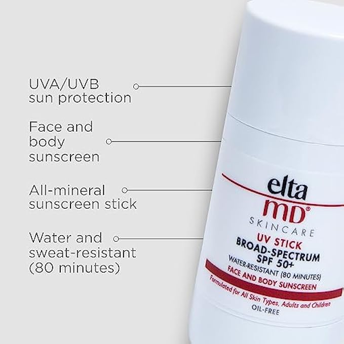 EltaMD UV Stick Face and Body Sunscreen, SPF 50+ Face Stick Sunscreen with Zinc Oxide, Water Resistant Up To 80 Minutes, Travel Friendly, TSA Compliant, For Face and Body, No White Cast, 1.3 OZ Stick