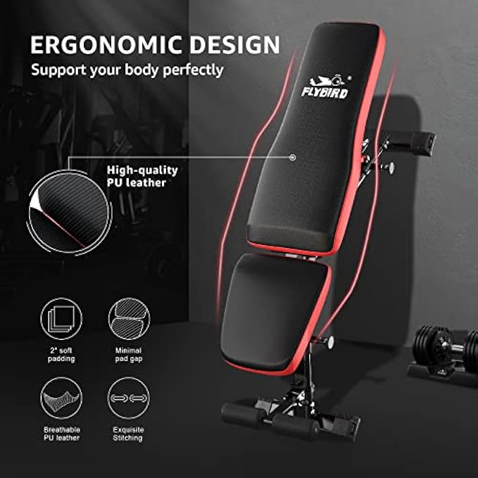 FLYBIRD Workout Bench, Adjustable Weight Bench Foldable Strength Training Bench for Home Gym - Newly Upgraded
