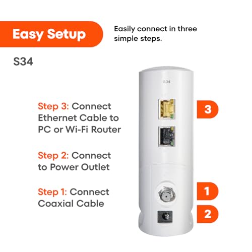 ARRIS (S34) - Cable Modem - Fast DOCSIS 3.1 Multi-Gigabit Cable Modem, for Comcast Xfinity, Cox, Spectrum & More, 2.5 Gbps Max Internet Speeds, 2 Year Warranty - (No Built-in WiFi)