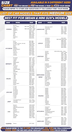 Wide Range of Sizes: Worried about which sunshade size to choose? EcoNour Car Sunshade auto accessories comes in seven different size variants that would fit right into most family sized four-wheelers. Please refer to the size chart for the best fit.