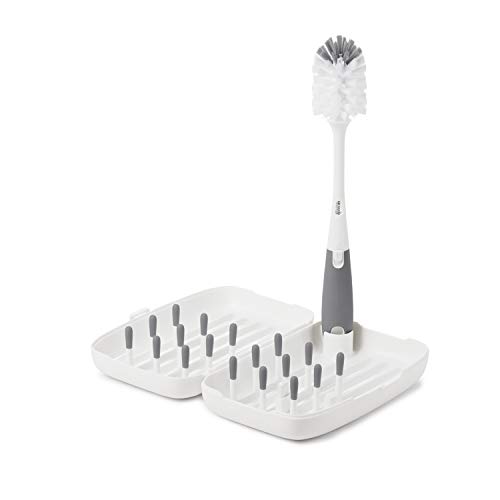 Bottle Brush fits securely onto pegs inside Drying Rack when not in use