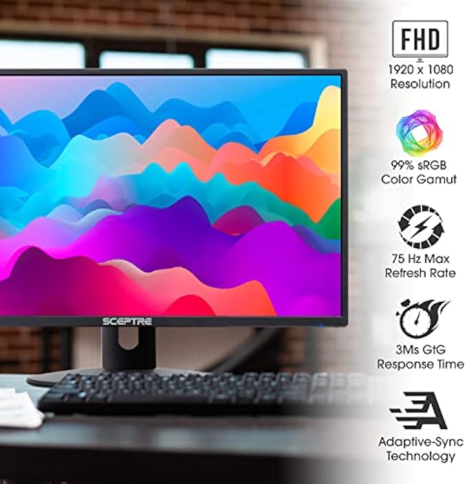 Sceptre 24" Professional Thin 75Hz 1080p LED Monitor 2x HDMI VGA Build-in Speakers, Machine Black (E248W-19203R Series)