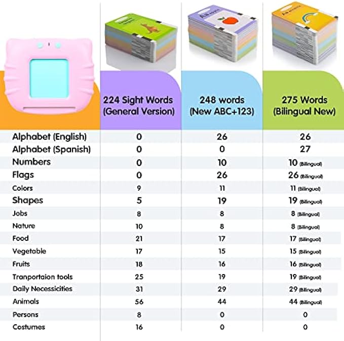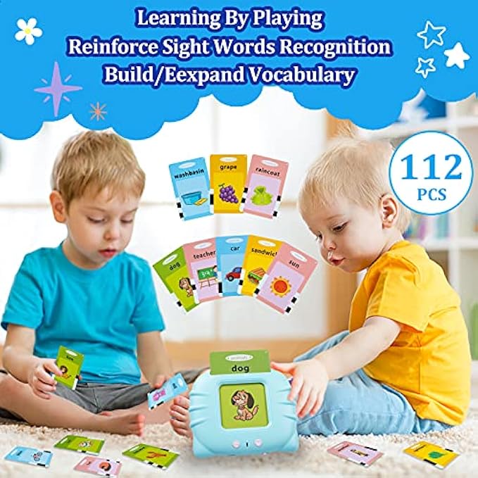 [ Toddler Learning Toys ] - This speech therapy toy includes a card reader and 112 double sided flash cards covering 12 subjects like shapes, colors, animals, daily necessities, transports, food, fruits, vegetables, costumes, nature, persons & jobs. Great learning toy for 2 year olds and up to learn sight words, enhance cognitive ability, exercise hearing and build vocabulary. Great autism sensory toys for autistic children.