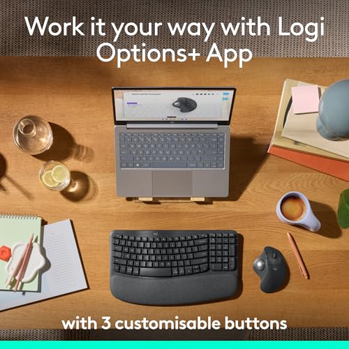 About this item Less Movement, More Comfort: The sculpted shape of the ERGO M575S wireless trackball mouse keeps your hand relaxed for hours of smooth, precise tracking with thumb control - now with quiet clicks 25% less muscle strain in your forearm (1): This wireless ergonomic mouse has been developed with Logi Ergo Lab experts, user-tested and certified by ergonomists for all-day comfort Improved forearm posture (1): The ergonomic shape of the ERGO M575S supports your hand and realigns your forearm into a better posture throughout the day; a good fit for most hand sizes Work it your way: Experience enhanced control with 3 customizable buttons, time-saving shortcuts, and Smart Actions; adjust the cursor speed to your preference with the Logi Options+ App (2) Save space with thumb control: With the ERGO M575S, you can move your cursor without moving your hand, making it ideal for small or space-saving setups and for use on any surface Easy to Connect, Long Battery Life: Connect your ergonomic wireless mouse using Bluetooth or the included Logi Bolt USB receiver; enjoy up to 18 months of battery life (AA battery included) (3) Made with recycled plastic: The plastic parts in the ERGO M575S Bluetooth trackball mouse are made of certified post-consumer recycled plastic (Graphite: 52%, Off-White: 21%) (4) Show more