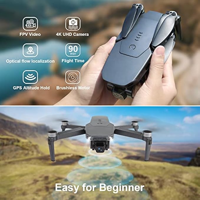 • 4K UHD Camera - The optimized Full HD camera with built-in shock mount ensures which captures more details as well as shooting 4K (3840 x 2160) high-resolution pictures. 90°adjustable lens with 5GHz FPV transmission will capture epic shots from a bird's eye view for you .