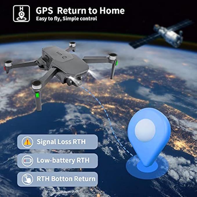 • Easy to Use - Adopts optical flow positioning & air pressure altitude control system , the drone can hover stably indoors and outdoors. GPS positioning system and Auto Return Home will ensure the drone to return when the signal is lost when the flight is out of range or under low battery condition .
