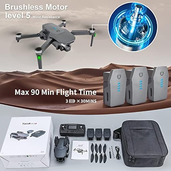 Tucok 90 Mins Drones with Camera for Adults,4K UHD Camera,3 Batteries Long Flight Time,Brushless Motor,GPS Auto Return,Circle Fly,FPV Drones Quadcopter with 5Ghz WiFi FPV Live Video for Beginners,Carr