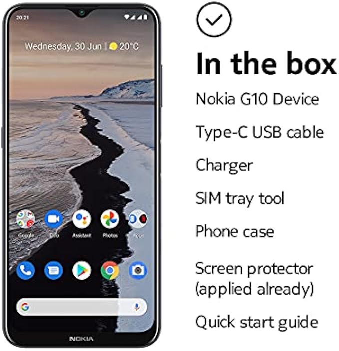 Nokia G10 | Android 11 | Unlocked Smartphone | 3-Day Battery | Dual SIM | US Version | 3/32GB | 6.52-Inch Screen | 13MP Triple Camera | Polar Night