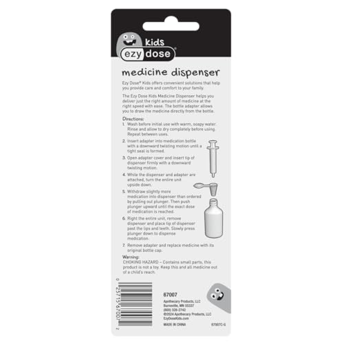 About this item ACCURATE DOSING MADE EASY: The EZY DOSE Baby Oral Syringe & Dispenser is calibrated for precise liquid medication delivery up to 10mL/2 TSP, ensuring accurate dosage for babies and toddlers every time BPA-FREE & SAFE MATERIALS: Crafted from BPA-free, child-safe materials, this oral syringe is designed for worry-free use, making it ideal for administering liquid medicines, vitamins, and supplements to infants and young children REDUCE MESS & SPILLS: Features an innovative design with a bottle adapter that minimizes spills and mess, allowing you to draw medicine directly from the bottle for a seamless and clean dosing experience EASY TO USE & CLEAN: The ergonomic design ensures a comfortable grip and smooth operation, while the clear markings make it simple to measure and dispense the correct amount. Easy-to-clean construction ensures hassle-free maintenance VERSATILE & PORTABLE: Perfect for at-home or on-the-go use, this 10mL oral syringe fits easily into your baby care kit. Whether it's liquid medicine or supplements, it’s a reliable tool for precise dosing