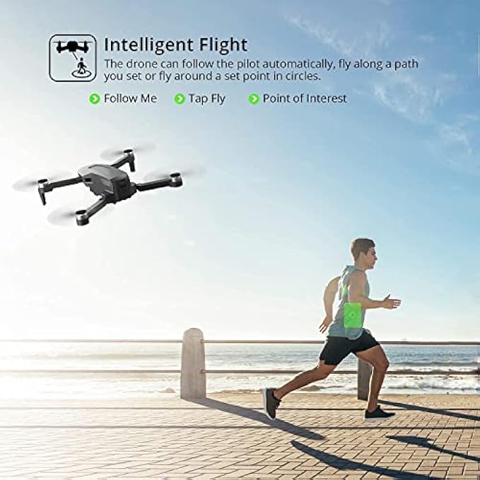 Smart and Fun: Features with Follow Me, free your hands to take complex shots; Point of Interesting to take a 360°shot for subject you set, and Tap Fly let the drone automatically fly with a customized route.