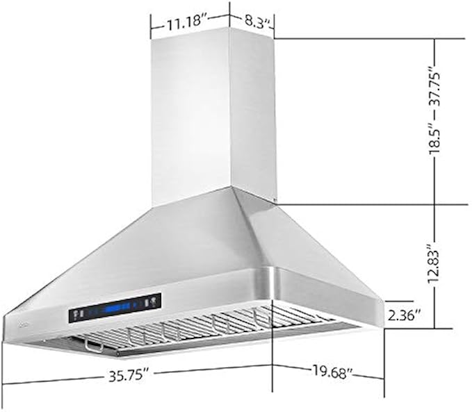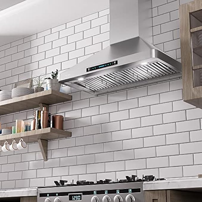 【Bright Kitchen Nightlight, Wide Vision for Cooking】Equipped with 2PCS 3W energy-saving LED lights, the brightness can be adjusted with touch to meet your cooking needs. This wall mount range hood 36 inch'lights are bright and soft without hurting the eyes,and instantly improves the visibility at night.