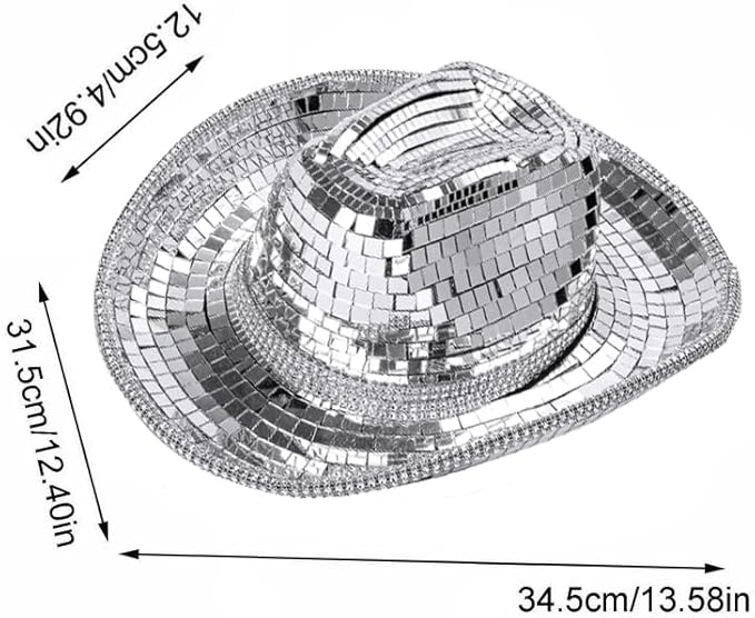 Disco Ball Cowboy Hat for Men Women Sparkly Silver Mirror Cowgirl Hats Cosplay Party Music Festival Cap