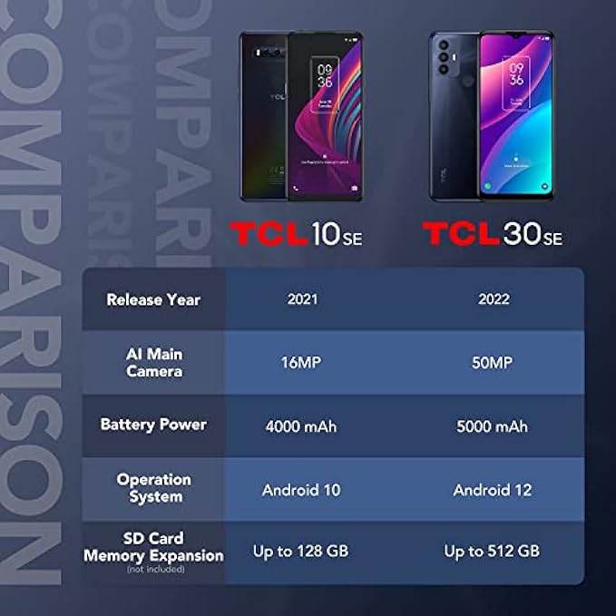 64GB of Storage: Create amazing videos and pictures anytime with ease. With the TCL 30 SE unlocked cell phone, you won't run out of space - 64GB internal memory gives you enough space to download and install everything you wish to have on your phone. You can also add up to 512GB of memory with a microSD card (sold separately).