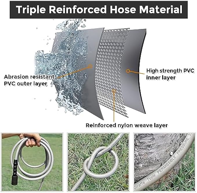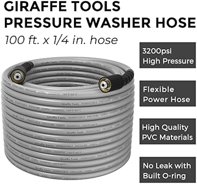 STANDARD FITTING — Giraffe Tools power wash hose is suitable with most brands’ and models’ pressure washer accessories, for adopting standard M22 fitting craftmanship. A good choice as a replacement or extension part for your genuine hose.