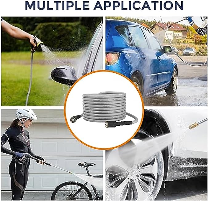 OUTSTANDING PERFORMANCE — Updated outer material ensures pressure wash hose non-marking. Stains can be removed at ease and scratches cannot stay. At the same time, it is naturally resistant of dirt, corrosion, kink, wear or weather.