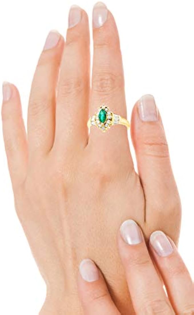 Jewelry Bliss 18k Yellow Gold Green Emerald Marquise Genuine Gemstone and Diamond Halo Gemstone Ring For Women Size 6