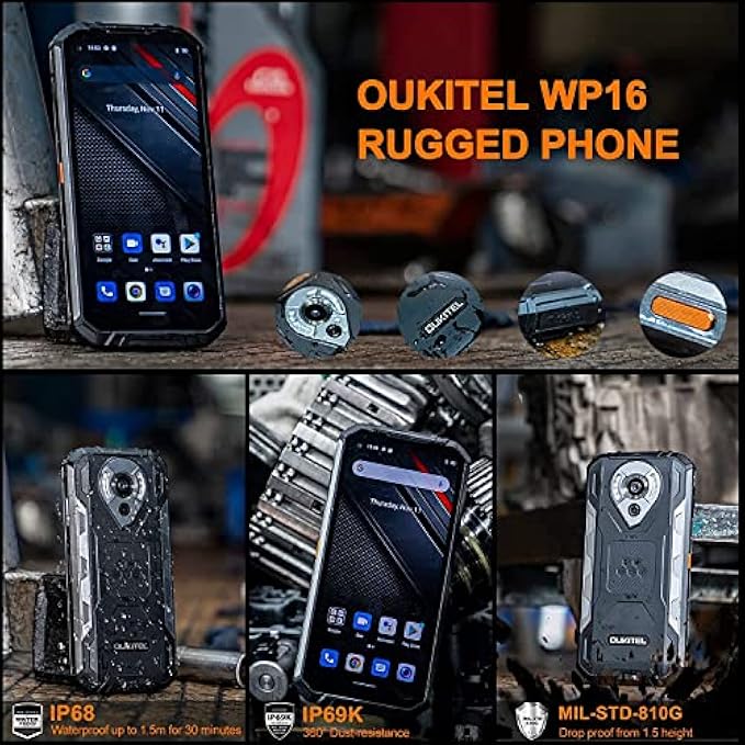• 【Android 11 & 8GB+128GB Octa-Core Phone】OUKITEL WP16 rugged smartphone is equipped with the latest Android 11 system.With 8GB RAM, you can open multiple APPs at the same time without a bit of lag. WP16 unlocked smartphones comes with 128G ROM,TF card can be expanded to 256GB.you can store almost everything you want to save.