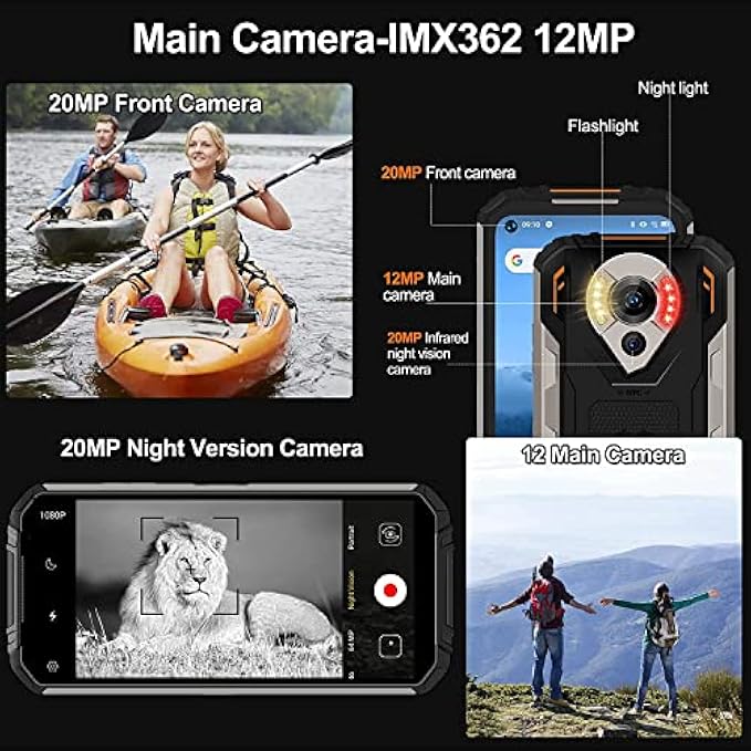 • 【20MP Night Vision+20MP Front Camera】OUKITEL WP16 Unlocked Phone has a 20MP night vision camerais, able to provide a clearly photographs even at a distance of 20 meters in the darkness.When traveling outdoors, even at night ,it can help you find lost items and help you to avoid some risks. The 20MP front camera offers high resolution. You will always be the protagonist of WP16 best mobile phones!