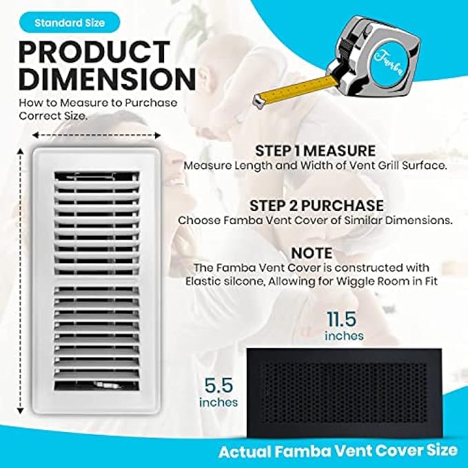 Famba Baby Proofing Vent Cover for Home Floor - Soft Silicone Child Proof Floor Air Vent Cover, Catches Small Items & Prevents Creepy Crawlies, Baby Safety Product, 11.5" x 5.5", Black, 3-Pack