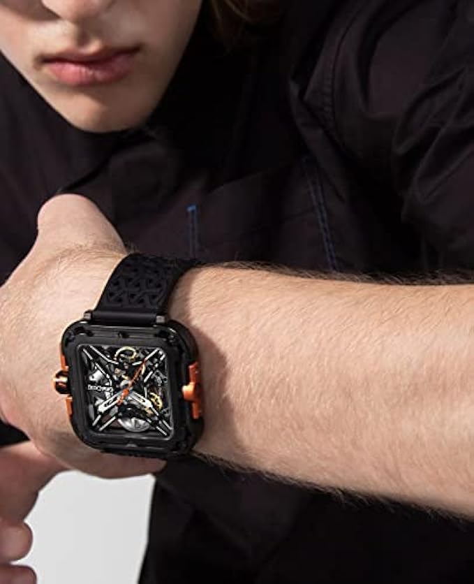 CIGA Design Mechanical Automatic Watch X Series SUV Inspired Anti-Shock Design Sapphire Crystal Analog Skeleton Watches with Silicone and Nylon Strap Fashion Wrist Accessories for Men and Women