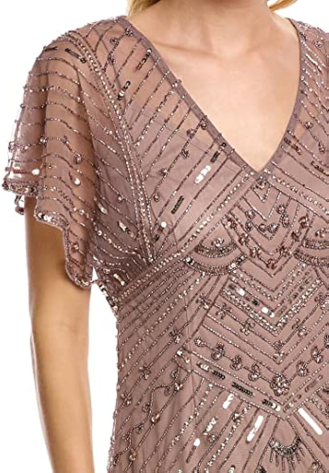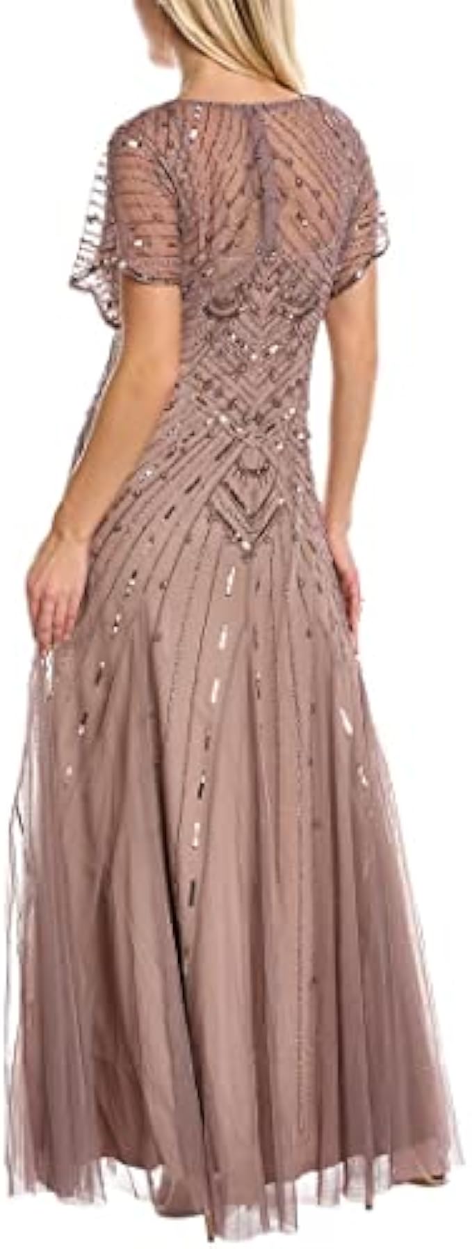 Adrianna Papell Women's Beaded Flutter Sleeve Gown