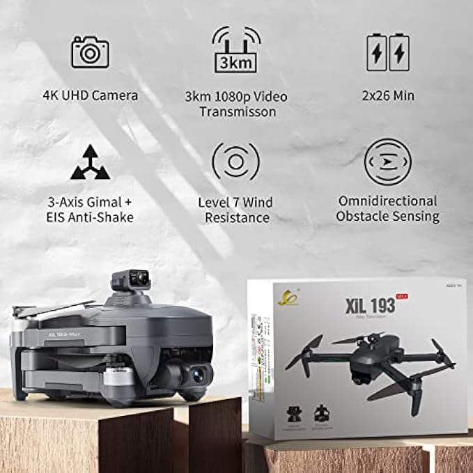 XiL 193MAX1 GPS Drone with Camera for Adults,4K EIS Camera Drone with Obstacle Avoidance,3-Axis Gimbal Quadcopter With 52 Min Long Flight Time,9800ft 5Ghz Transmission,Auto Return Home,Brushless Motor