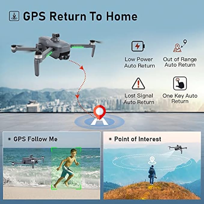 • 4K EIS Camera with 3-Axis Gimbal: With 3-axis Mechanical gimbal and 4K EIS (Electric Image Stabilization) Camera.Built-in Sony Image Sensor and 100°FOV lens,capturing a winder and clear view;50 times ZOOM gives you a closer look at a distance to get more creative shots;Pictures are taken with 4K (3840 x 2160) from the TF card.