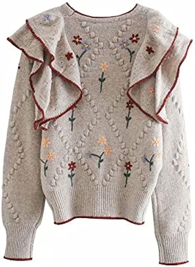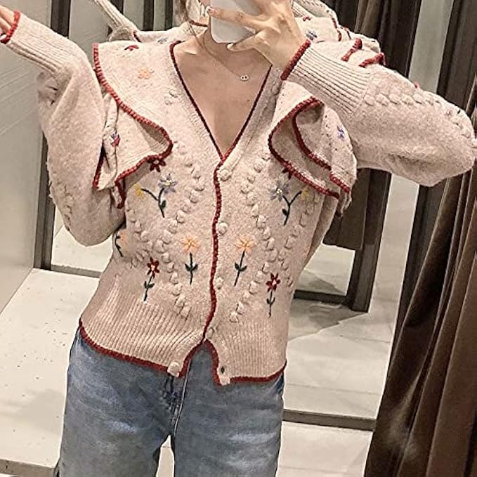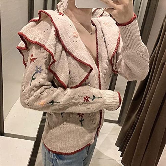 n/a Elegant Woman Plaques Sweater Coat, Fashion Ladies Flower Embroidery Knitted Sweater (Color : White-Patch Five-Pointed star4, Size : M Code)