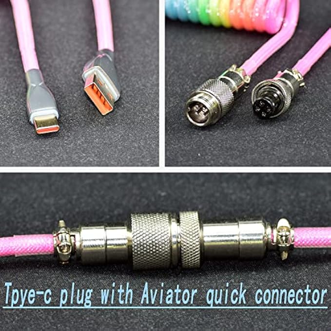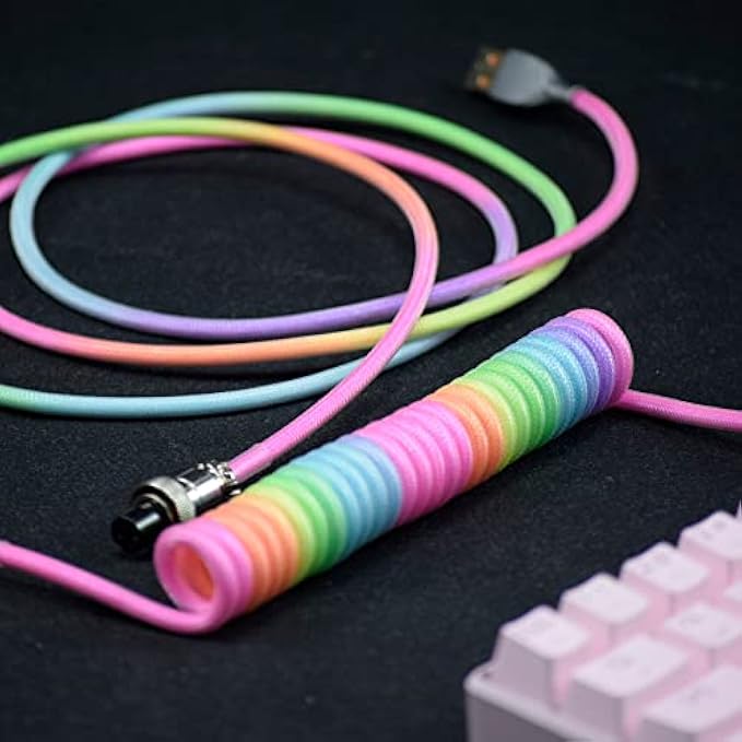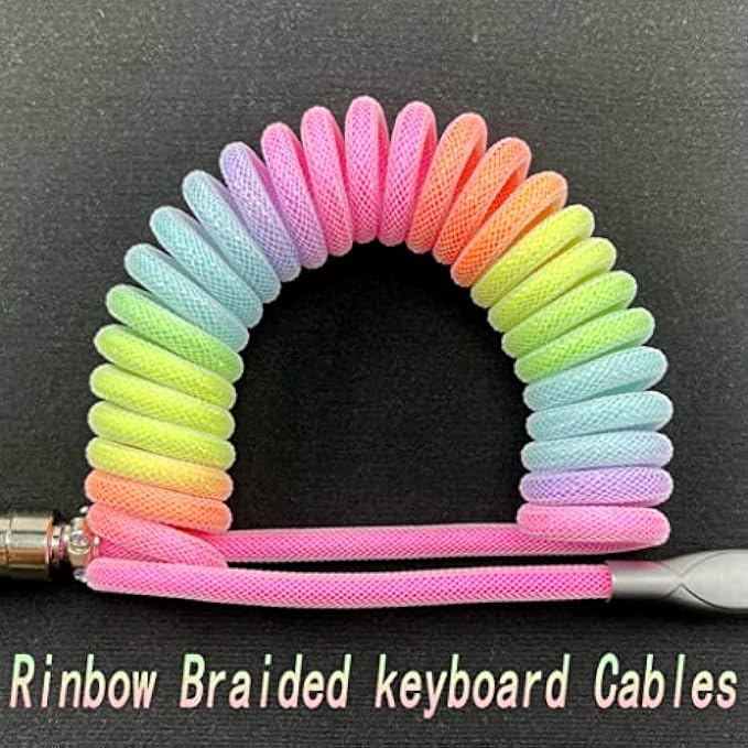 ZDawnn Braided Keyboard Cables 1.5m Coiled Type-C to USB A with Detachable Aviator Connector.for Gaming Keyboard/Tablet (Rainbow)