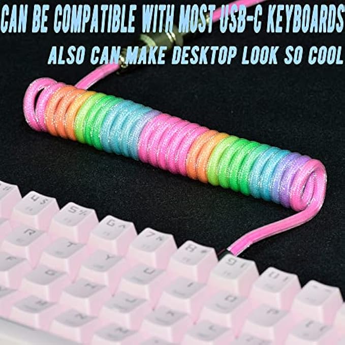 • TypeC to USB-A Cable supports safe fast charging and the speed of data sync up.Custom coiled keyboard cable can be compatible with most USB-C mechanical gaming keyboards.