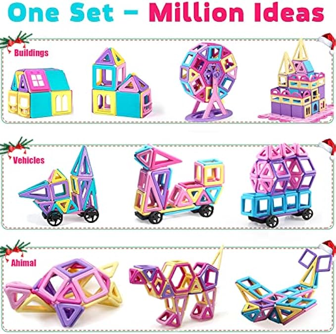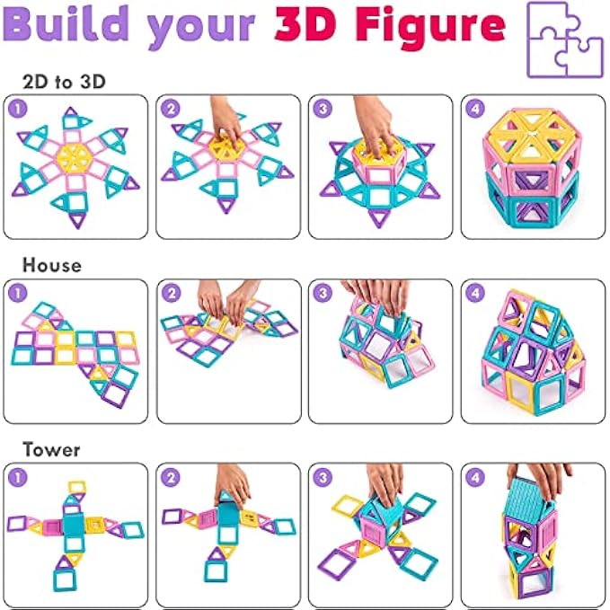 • 【Great STEM Learning Tool for Children】 -Magnetic blocks set can help children develop in science, technology, engineering, mathematics. Great STEM toy gifts for 5 years old girls to play with family! This product will hold their attention while building coordination skills and critical thinking.