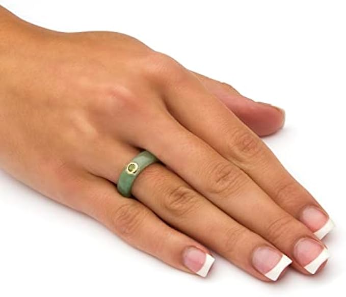 PalmBeach Jewelry 10K Yellow Gold Round Genuine Black or Red or Green Jade With Genuine White Topaz or Garnet or Peridot Accent Bezel Set Ring