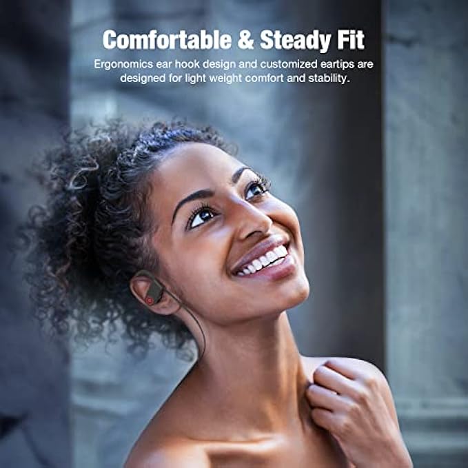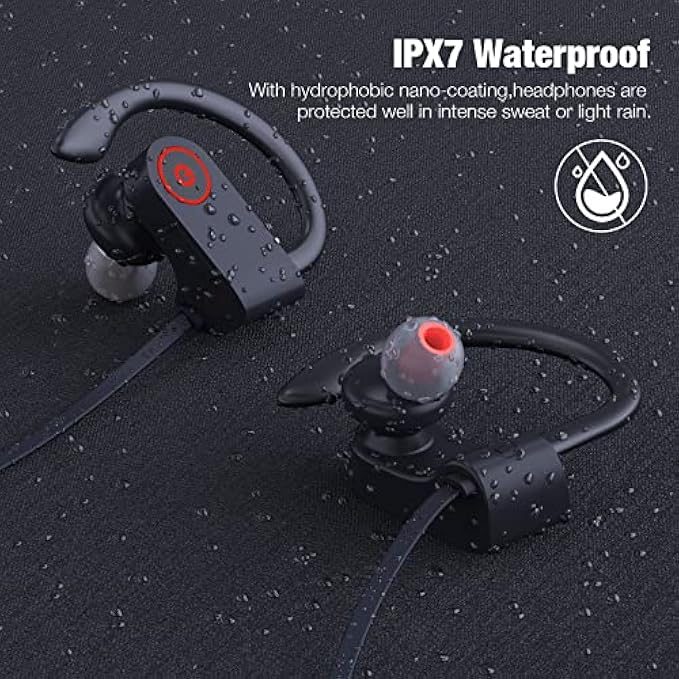 • 【IPX7 Waterproof Headphones】 Adopting highly sealed shell + nano-coating waterproof technology, this headphones waterproof performance reaches IPX7 waterproof standard, and it is not afraid of sweat attack even if it is used in severe sports. Great for running, hiking, cycling, fitness, yoga, travel, gym etc.