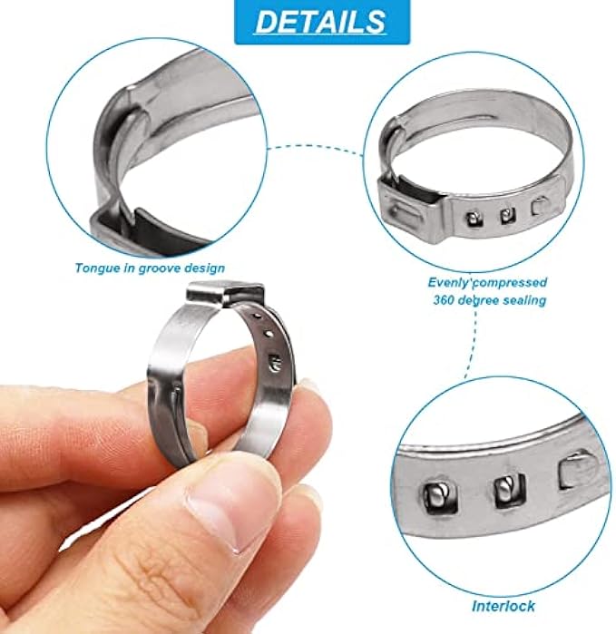 • [Easy to Install] The slide ear clamp ring onto the tube, push the pipe onto the fitting and squeeze it with a clamp tool. Provide a firm, leak-free and reliable crimp joint connection.