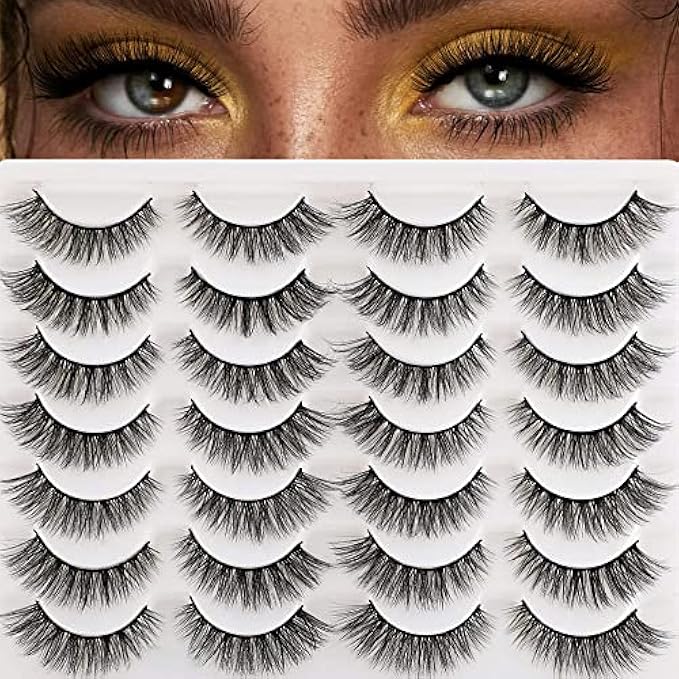 Newcally Lashes False Eyelashes Cat Eyes Wispy Natural Faux Mink Lashes 14 Pairs Pack Light Volume Short Fake Eye Lashes Multipack