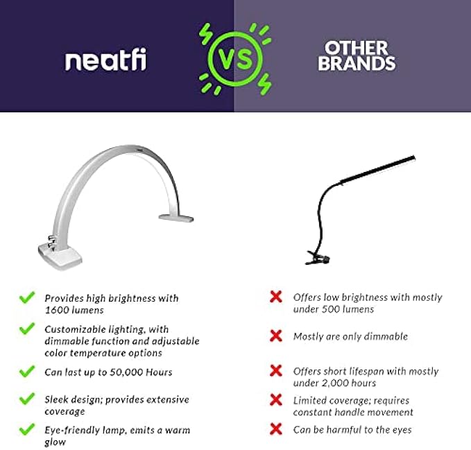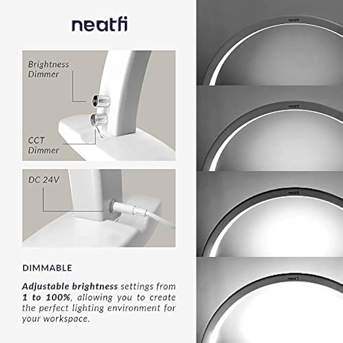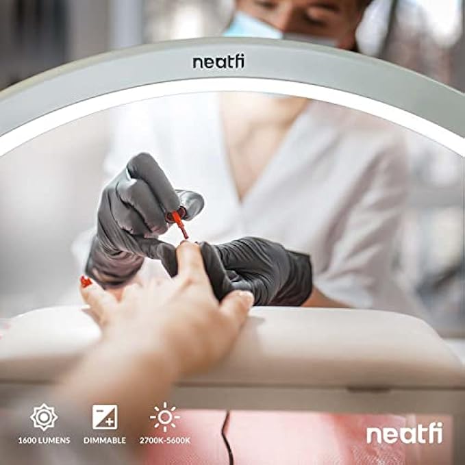 Neatfi Half Moon LED Table Lamp for Estheticians, Nail Tech, and Cosmetician, 1600 Lumens, Dimmable, 3 Light Modes, 40W, 2700K-5600K, for Nail Art, Facial, Waxing, Threading and Tattoo (White)