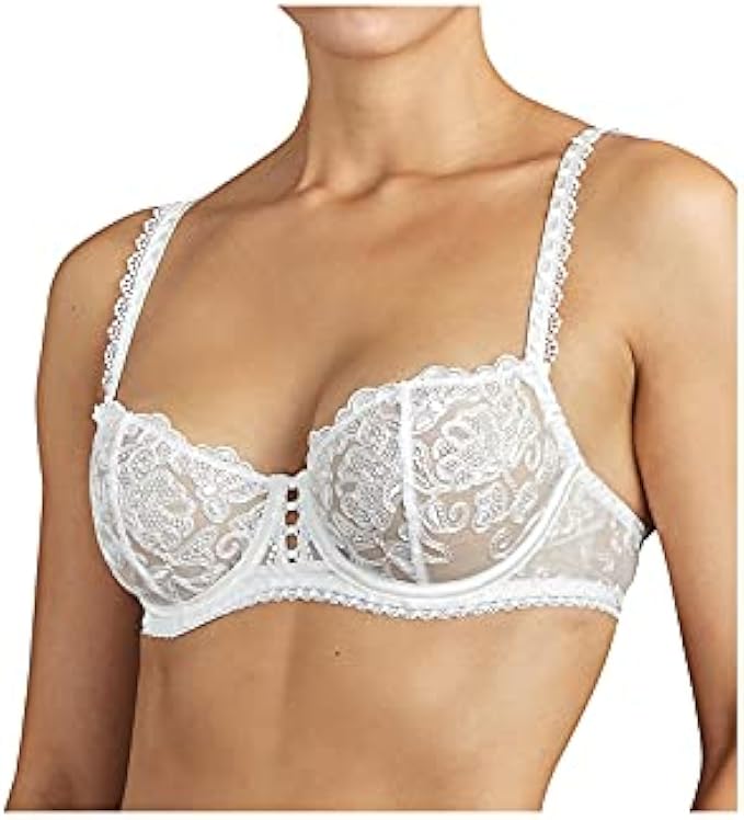 <li class="a-spacing-mini"><span class="a-list-item"> 42% Polyester, 41% Polyamide, 17% Elastane </span></li> <li class="a-spacing-mini"><span class="a-list-item"> Beautiful underwired half cup bra uplifts the bust creating a romantic push-up cleavage </span></li> <li class="a-spacing-mini"><span class="a-list-item"> Enhanced with a luxurious transparent tulle and highlights of delicate embroidery </span></li> <li class="a-spacing-mini"><span class="a-list-item"> Adjustable shoulder straps and a hook back fastening ensure the perfect fit </span></li> <li class="a-spacing-mini"><span class="a-list-item"> Treat yourself today and pair with the coordinating brief </span></li>