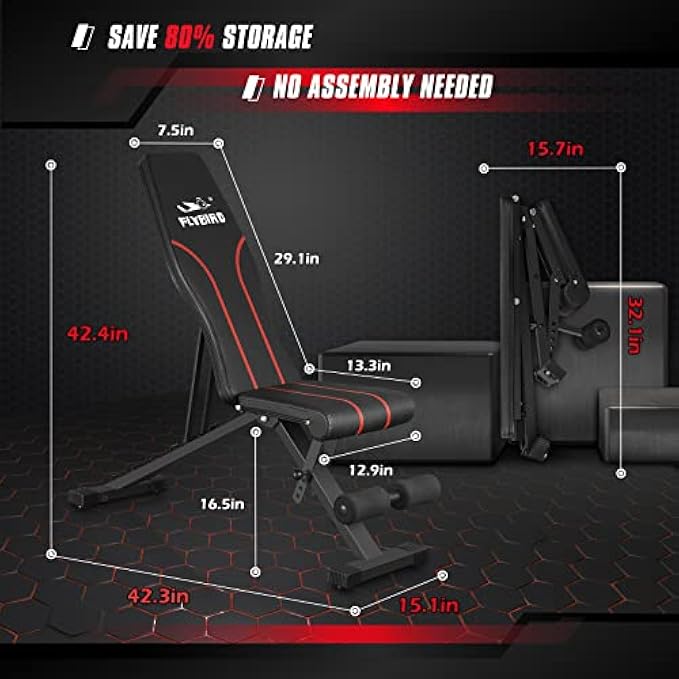 Save 80% Space; Flybird Foldable Bench, Easy To Carry And No Assembly Needed, Folded Size: 31.5 In 12.6 In 11.8 In; You Can Put It In The Corner, Closet Or Under The Bed When You Finish Workout
