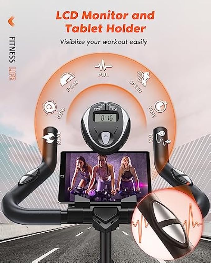 【LCD Monitor and Ipad Mount】The LCD monitor on the exercise bike tracks your pulse, time, speed, distance, calories burned, and odometer. The gift Ipad holder allows you to enjoy riding and music at the same time, making it easier to keep your workout.
