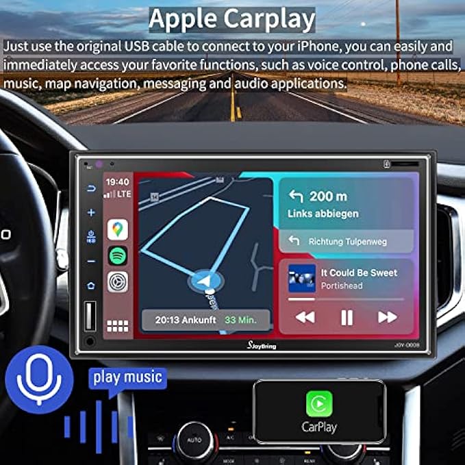 • ?【Voice Control Carplay】This double din car stereo compatible with Apple Carplay, allowing superior voice assist control and making it easier to access your iphone functions including music, map navigation, calls, notification, messages and much more , while keeping your hands free for totally safe driving maneuvers!