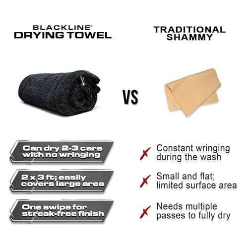 ONE TOWEL IS ALL YOU NEED - Say goodbye to using towel after towel. It might be crazy to think about, but one pass is all you need with the Blackline Drying Towel. Your car will be completely dry and all you need is a single towel.