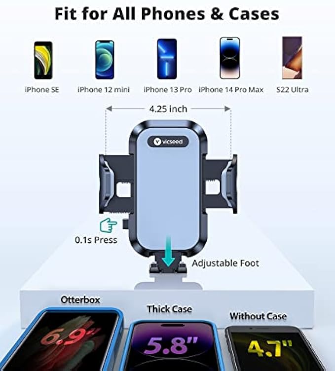 VICSEED Phone Mount for Car [Powerful Suction][Thick Cases & Big Phones Friendly] Universal Car PhoneHolder Mount Dashboard Windshield Air Vent Cell Phone Holder Car for iPhone