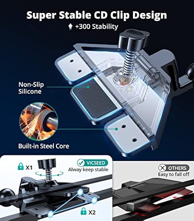 • 【Stablest Metal CD & Vent Clip】The unique combination of 2 in 1 CD clip and air vent clip allows the car phone holder to match almost all models car. What’s more is the metal clips are 20X stabler than the plastic ones