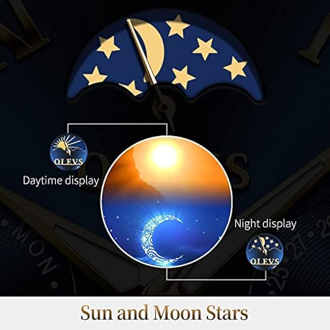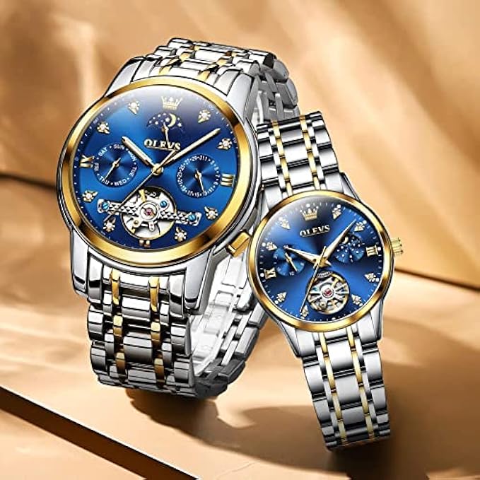 • Couple Set Watches?: Shiny diamond scales on the dial, luxurious and easy to read, classic tourbillon design, equipped with a 24-hour small dial and a small sun and moon dial, which can distinguish between day and night, a perfect mechanical watch.