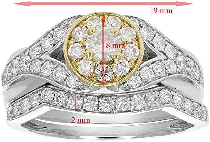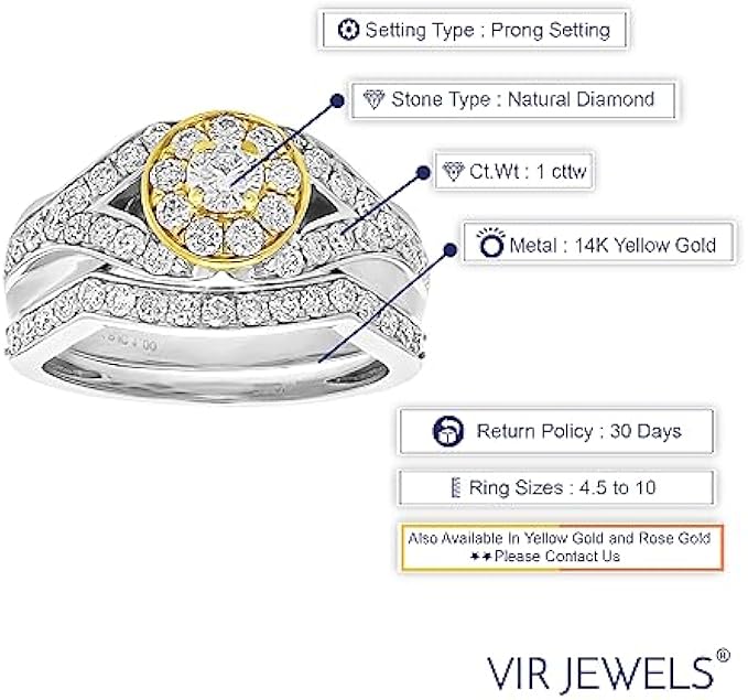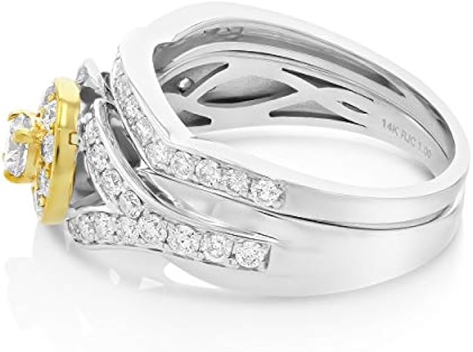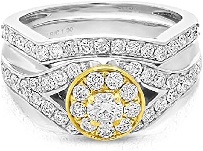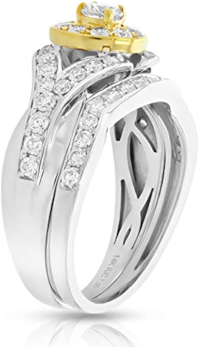 VIR JEWELS 1 cttw Diamond Engagement Bridal Ring Set 14K Two Tone Gold Halo Style Wedding