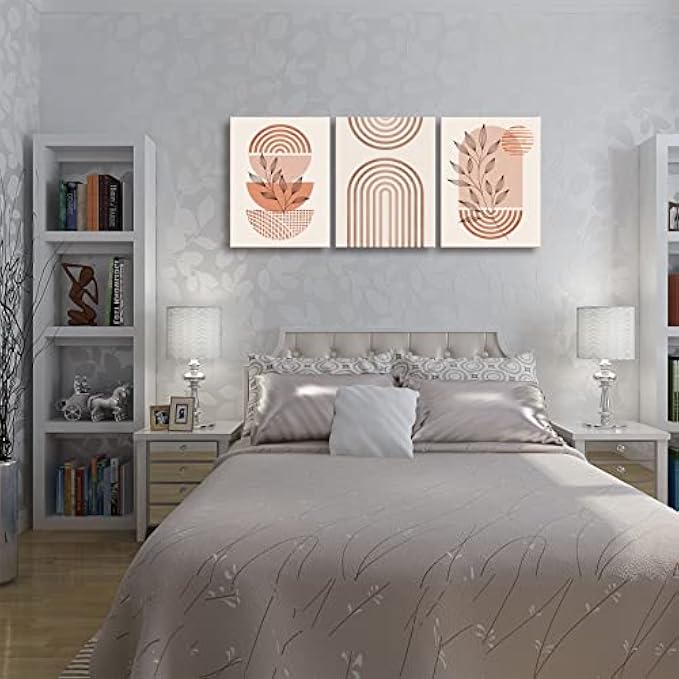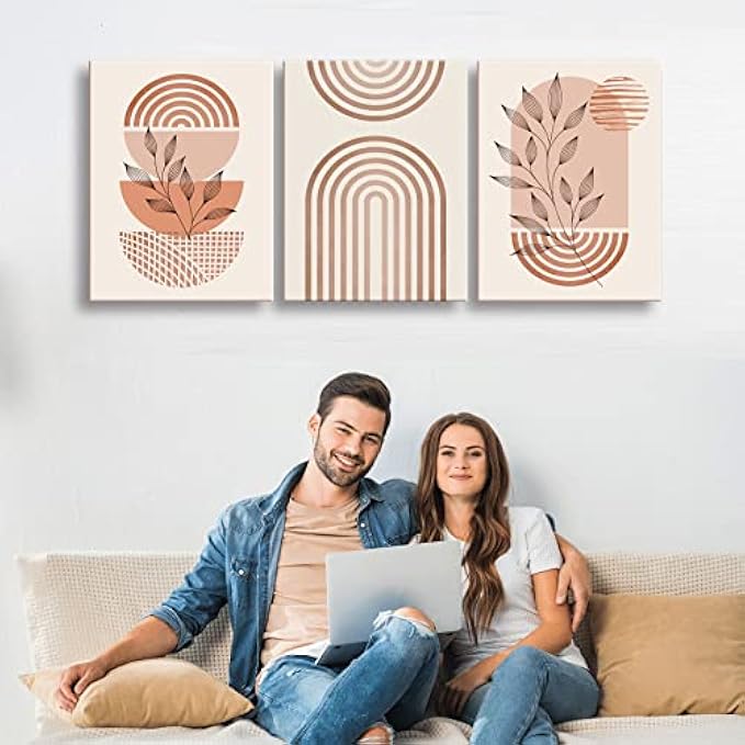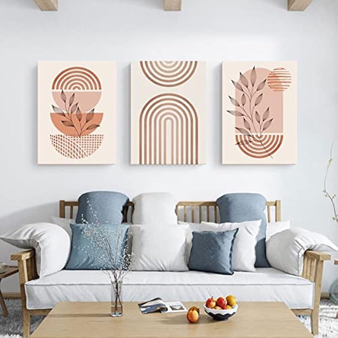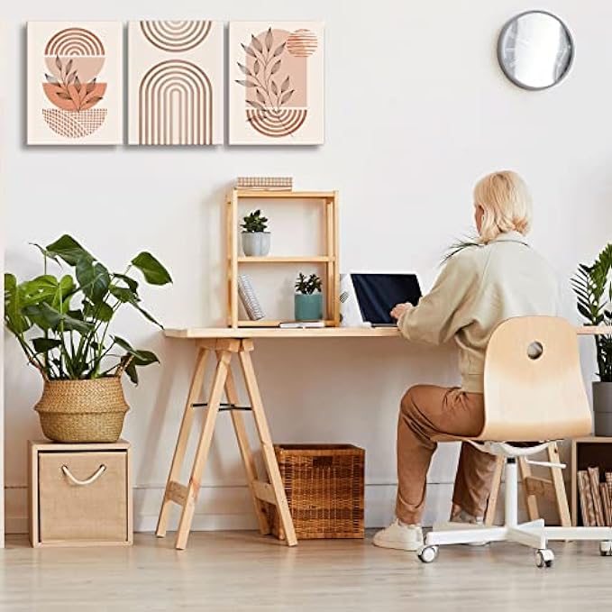 Abstract Boho Wall Art Set of 3 Bedroom Decor Minimalist Wall Art Office Wall Decor Framed Artwork for Wall Boho Art Wall Decor Canvas Prints Wall Art for Living Room Mid Century Modern Art Print for