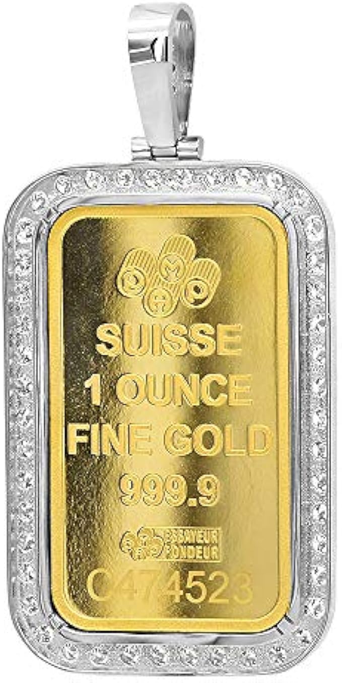 Real 99.9 Gold 1 Ounce Pamp Suisse Bar Lady Fortuna Diamond Pendant 3.75ctw in 24k Gold (White Gold)