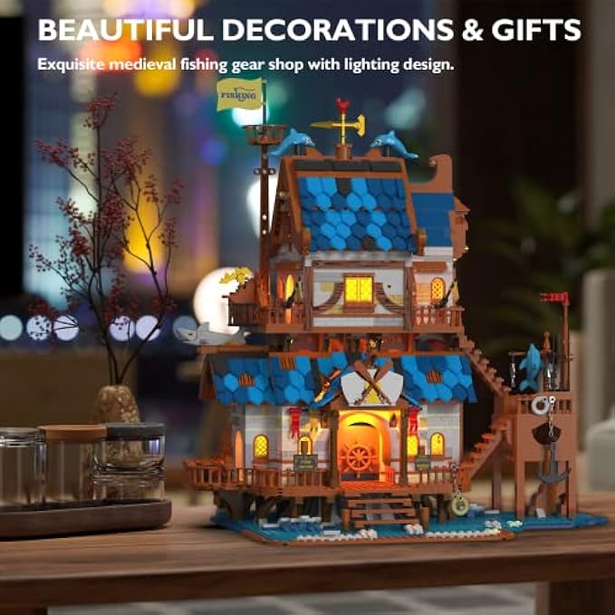 • 【Endless Game Experience】Our adult house toy set consists of 2450 high-quality building blocks, and comes with detailed and easy-to-understand instructions, making assembly a breeze. Experience what it's like to run a medieval town shop with the fishing tackle shop toy. You can play role-playing games with your family and enjoy hours of gaming fun. And building blocks is good for stimulating creativity and imagination, making this toy a perfect combination of fun and cognitive development.