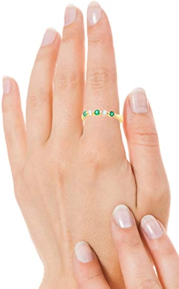 Jewelry Bliss 18k Yellow Gold Green Emerald Genuine Gemstone and Diamond Alternating Band Ring For Women Size 7