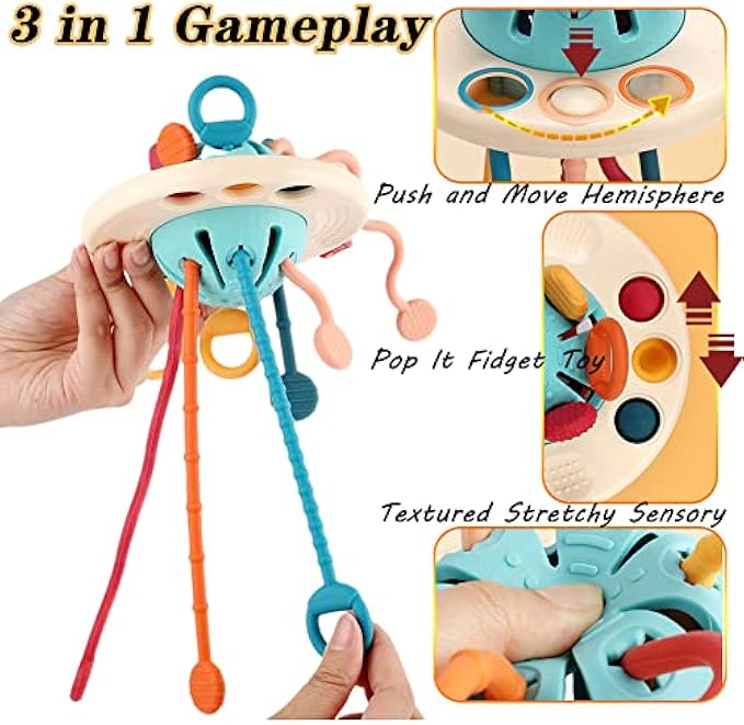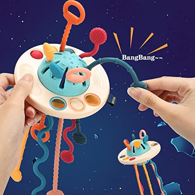 ?【3-IN-1 UFO Fidget Pop It Toys】3 ways to play.8.3*4.7 in. Bright colors catch baby's eye.Not addicted to flat screen or TV.Mom-approved,child-tested montessori toys are made for learning and development !